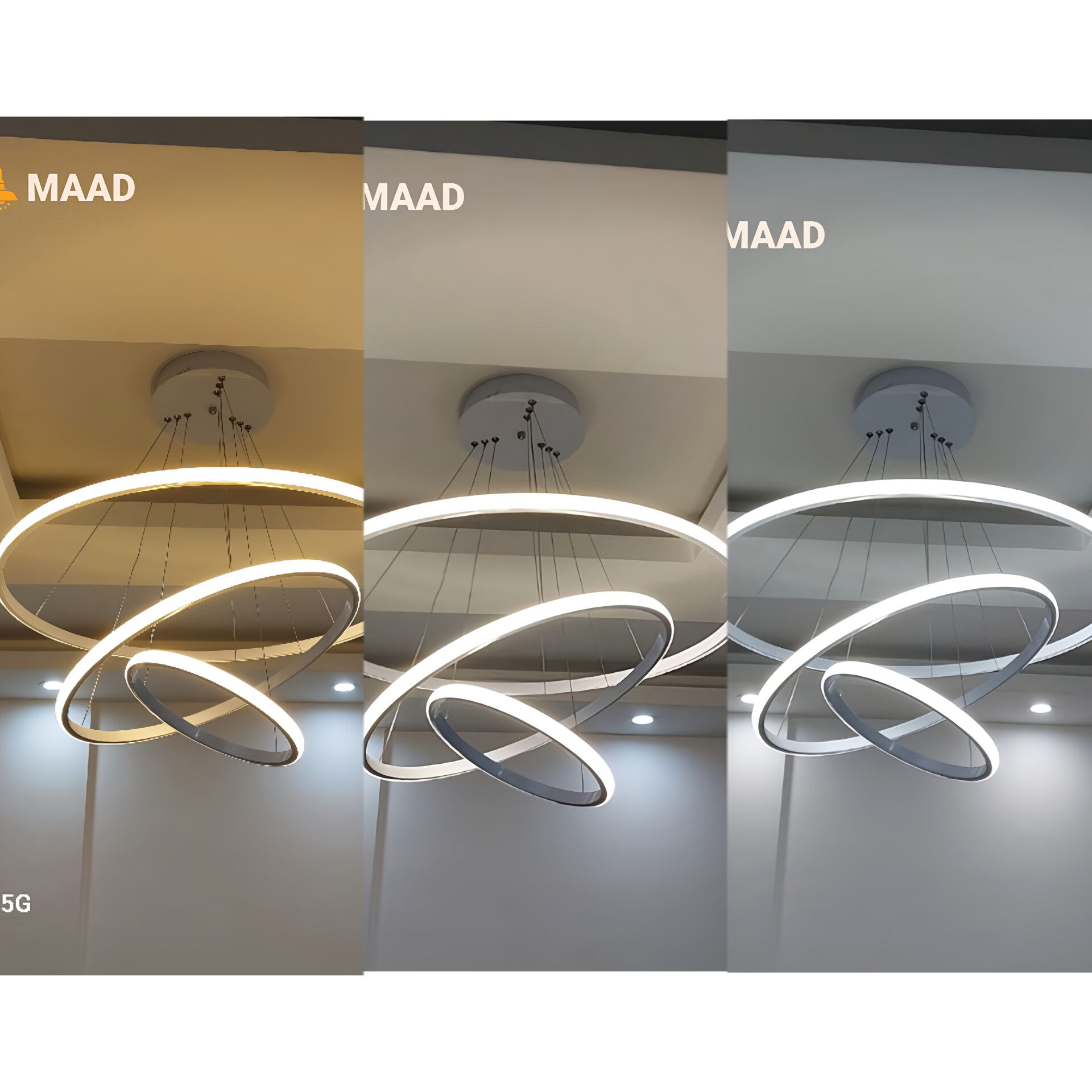 لوستر دایره کهکشانی ۴ طبقه سایز ۶۰-۵۰-۴۰-۳۰🥇 ماد اولین و تنها برند ثبت شده لوستر مدرن با گارانتی شرکتی در ایران 🇮🇷لوستر ماد با لامپ مدرن SMD توانسته نوردهی بالا و مصرف کم برق داشته باشد✅جنس :پلگسیجنس بدنه : آلمینیوم✅رنگبندی: سفید و مشکی الکترواستاتیک✅استفاده از اس ام دی با تراکم بالا (۲۰۰ عدد)که باعث میشود نورردهی خیلی بالاتر نسبت به لوسترهای مشابه داشته باشد✅ تنظیم ارتفاع: دارد✅رنگ نور تک حالته ها: آفتابی، مهتابیرنگ نور لوستر سه حالته: آفتابی، مهتابی، نچرال(ترکیبی)✅ریموت کنترل: لوستر های سه حالته دارند✅قابلیت تنظیم شدت نور و دمای نور: لوسترهای سه حالته دارند✅قابلیت تغییر آفتابی مهتابی نچرال با استفاده از اپلیکیشن و هر بار زدن کلید برق و ریموت کنترل: لوستر های سه حالته دارند✅ضمانت اصالت و کیفیت قطعات: شرکت ماد✅کیفیت اس ام دیهای به کار رفته در محصولات شرکتی ماد مرغوب و از نسل جدید است که طول عمر بسیار بالایی دارد✅ علاوه بر این استفاده از آلومینیوم به عنوان بدنه لوستر که خود نوعی هیدسینگ( خنک کننده) میباشد طول عمر به مراتب افزایش داده است✨طراحی فضای نوری شما در گفتگو