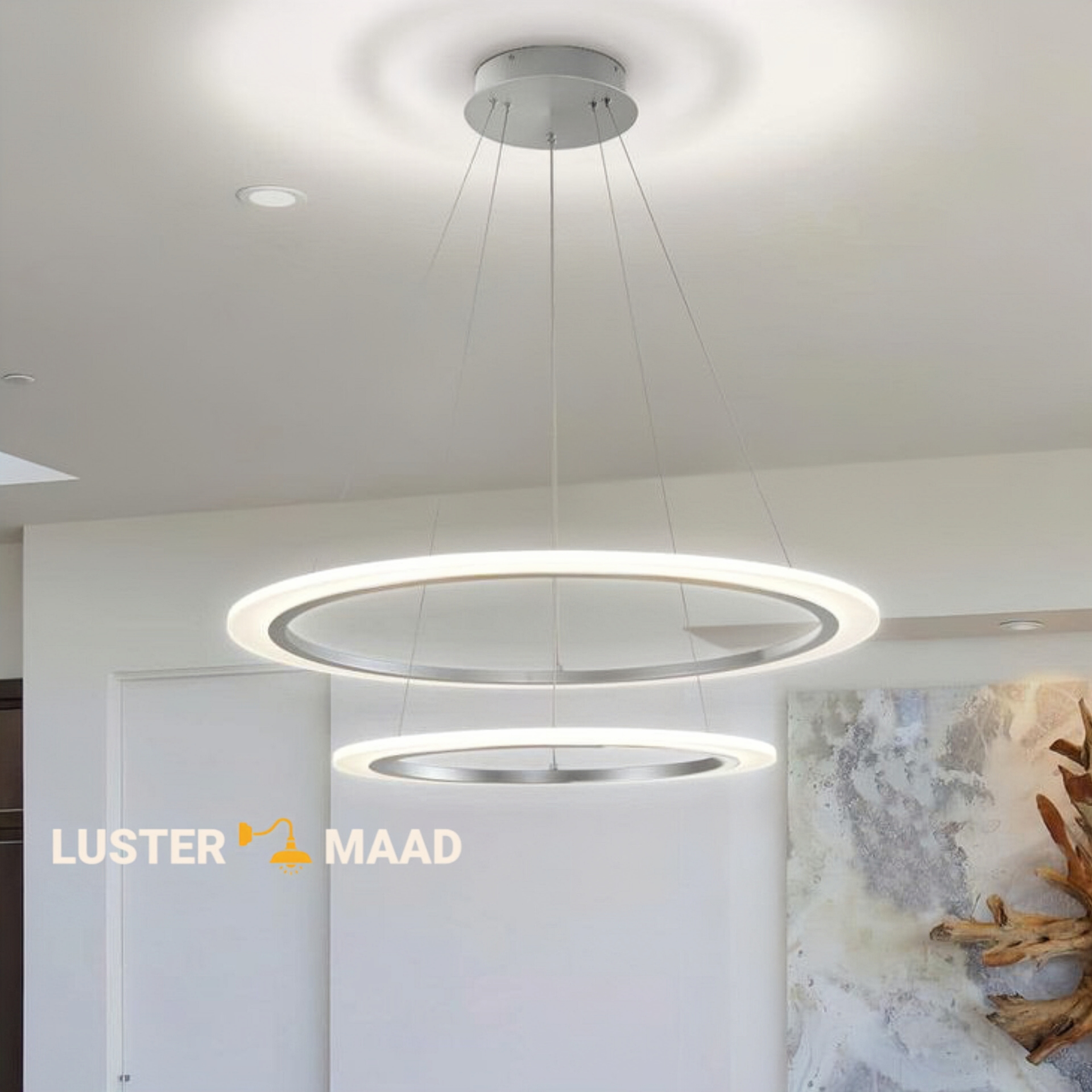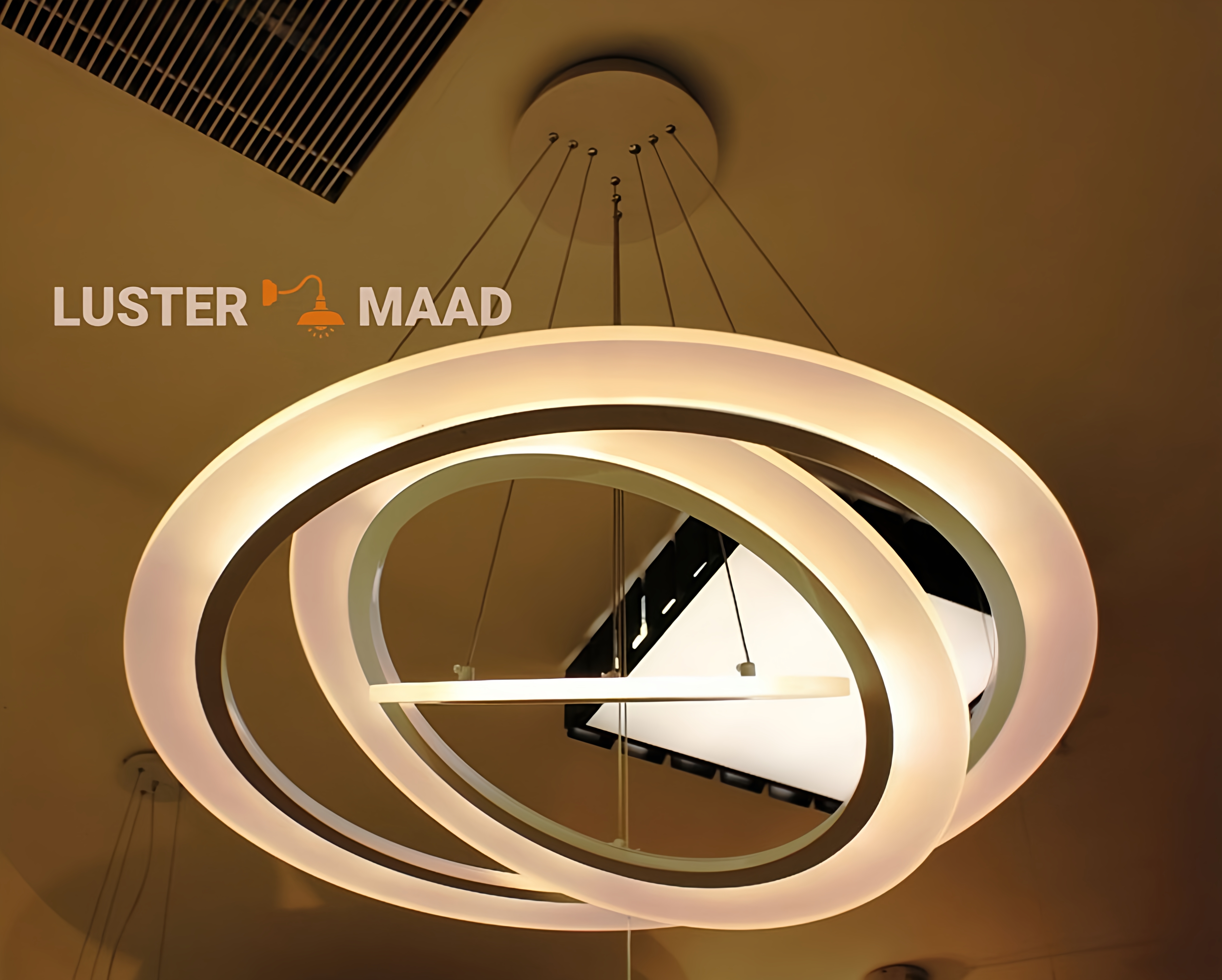 طبقه اول قطر 50 سانت طبقه دوم قطر30 سانت توان نوردهی 15۰وات توان مصرفی 4۰وات آویز مدرن با نصب اسان دارای پلگسی گلاس ضد خش ورنگ ثابت موارد استفاده : پذیرایی-اتاق -دفاتراداری -مغازه -فضاهای مدرن نصب به صورت زاویه دارقابلیت تنظیم ارتفاع SMDدارای تکنولوژی دارای ریموت کنترل دارای دیمر جهت تنظیم میزان نور فوق کم مصرف با کیفیت و نوردهی عالی..رنگ بدنه سفید هست از نوع کوره ای الکترواستاتیک.این محصول کم مصرف، با کیفیت و نوردهی عالی به عنوان مدل رینگی شناخته میشود. طرح چهار طبقه با زیبایی بی نظیر خود طراوت را مهمان منازل شما خواهد کرد. نوردهی عالی در کنار درخشندگی خاص این لوستر، آن را در میان مشتریان گرامی محبوب کرده و قابلیت نصب زاویه دار، ویژگیهای خاصی به آن بخشیده است. با استفاده از این سیستم، دکوراسیونی متفاوت خواهید داشت. پلگسی گلس ضد خش تا سالها بدون تغییر رنگ، زیبایی خود را حفظ خواهد کرد. این محصول زیبا و چشم نواز هدیهای از طرف ما برای منازل شماست. با ما بهترینها را در محیط زندگی خود داشته باشید..